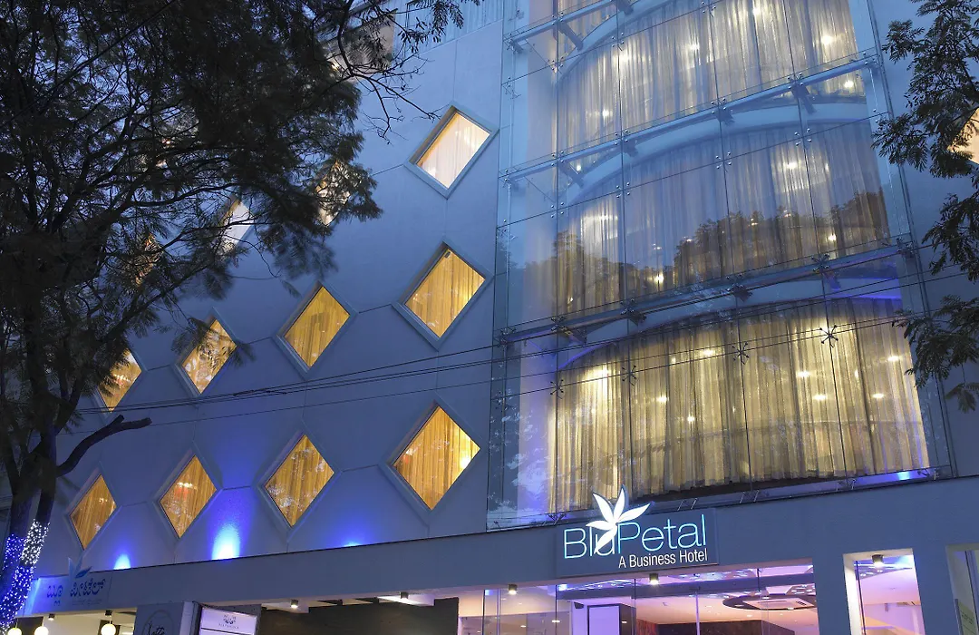 Blu Petal - A Business Hotel, de 3 estrellas, con una ubicación céntrica, se encuentra en el barrio comercial de Bangalore y ofrece depósito de equipajes y un restaurante. El hotel dispone de clases de fitness, instalaciones de ocio del hotel y actividades de entretenimiento, así como de instalaciones para banquetes y reuniones, un escritorio.